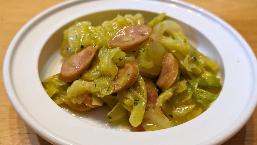 - (副菜)キャベツとソーセージのカレー炒め