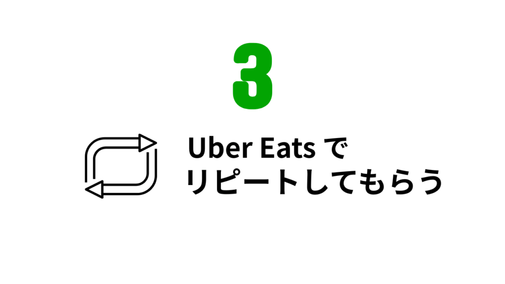 Uber Eats(ウーバーイーツ)でユーザーに見つけてもらい、選んでもらったら、そのあとリピートしてもらうことで店舗の売上を安定的に伸ばしていけます。