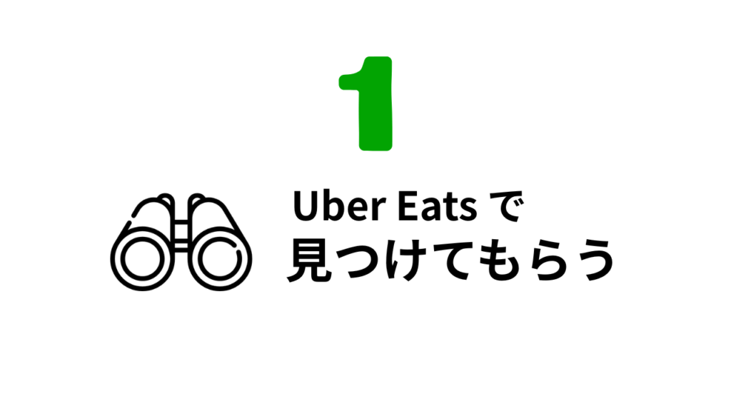 Uber Eats の中で自分のお店を見つけてもらうためには、次の方法があげられます。