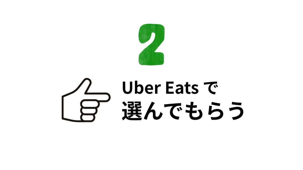 Uber Eats アプリやSNSで自分のお店をユーザーに見つけてもらったら、選んでもらい、実際に注文してもらうことで、店舗は売上を伸ばせます。